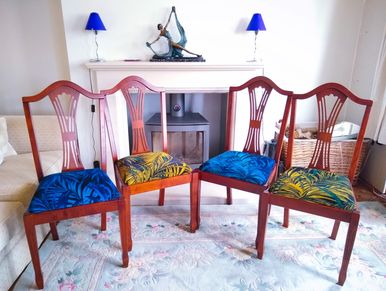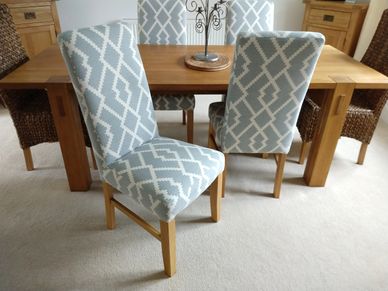 Lorraine in Stratford on Avon was delighted when we gave her old dining chairs a new refreshed designer look to match her household decor