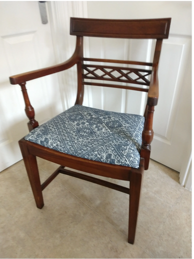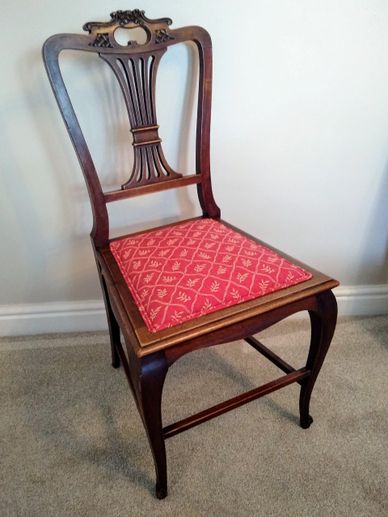 We put a new seat in this dining chair using a classic Linwood fabric that suits the character of the chair. This chair had been in our customer's family since new in 1880