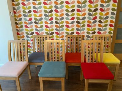 Customising your dining chairs to match your kitchen wall paper is always an option. Not the first customer to ask for this and probably will not be the last