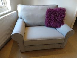 Belinda from Stratford on Avon chose this lovely soft wool-effect washable fabric for the loose cover on her snuggle chair