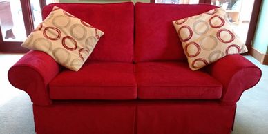 We used Fryetts Naples velvet to create this well fitted loose cover on a customers' sofa bed. We did not change the cushions as the customer was happy to keep these