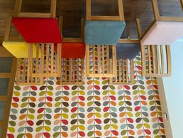 Customising your dining chairs to match your kitchen wall paper is always an option. Not the first customer to ask for this and probably will not be the last