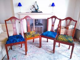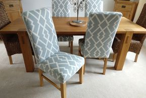 Lorraine in Stratford on Avon was delighted when we gave her old dining chairs a new refreshed designer look to match her household decor