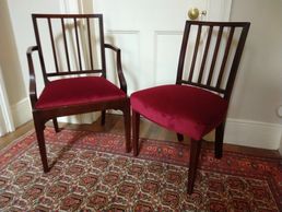 Mark and Jane were delighted with this complete traditional restoration of some very old family heir looms. Set of 10 dining chairs and 2 carvers in red velvet