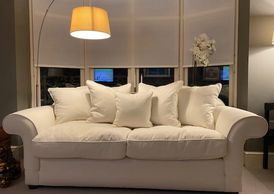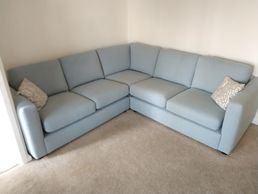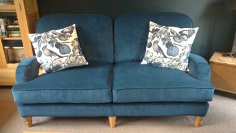 Fiona of Warwick just couldn't find another sofa to fit so perfectly in her living room. A very reasonable price blue felt wool effect fabric was just what she wanted.