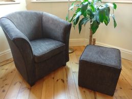 Jill and Ron were very happy with their refurbished tub chair and foot stool completed using lovely wool and linen soft feel high quality Linwood fabric
