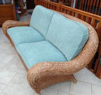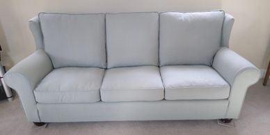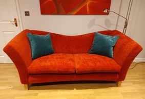 Sam from Gaydon was very pleased with this re-cover of an unusual wave shaped love seat in stunning King Fisher blue