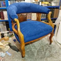 Harriett of Warwick wanted to rebuild this family heirloom supplied as a bare frame and completely upholstered with extensive frame repair and wood finishing