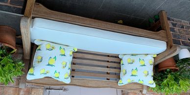 Jane was delighted with her brand new outside bench cushion finished in Sunbury Design fabric which is extremely high quality and also weather resistant