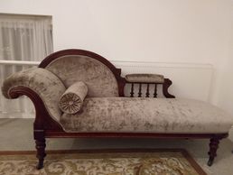 Jonathan of Rugby commissioned this stunning chaise lounge in gorgeous new fabric and requiring a complete seat rebuild and various new fixings.