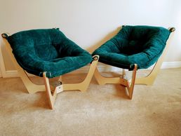 An interesting American made set of "couples chairs". If they look a bit wonky its a deliberate part of the design - each is one inch lower on one side to the other